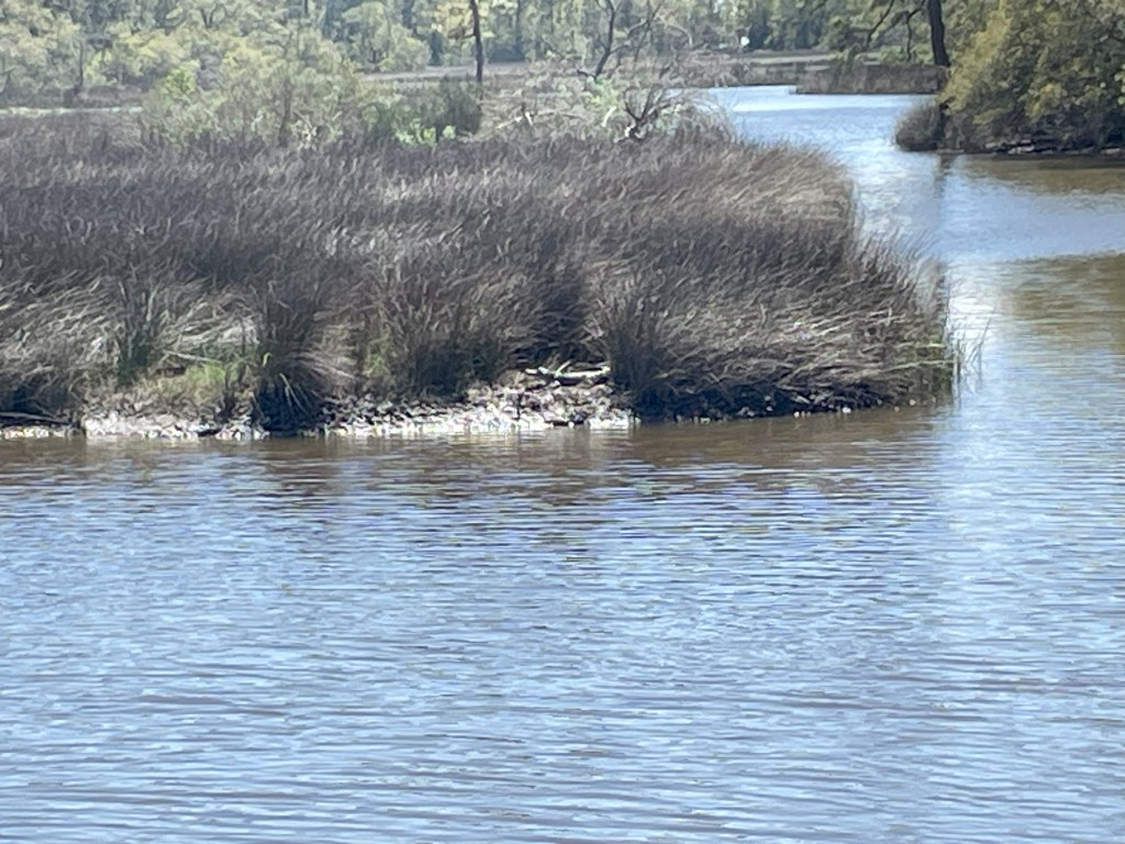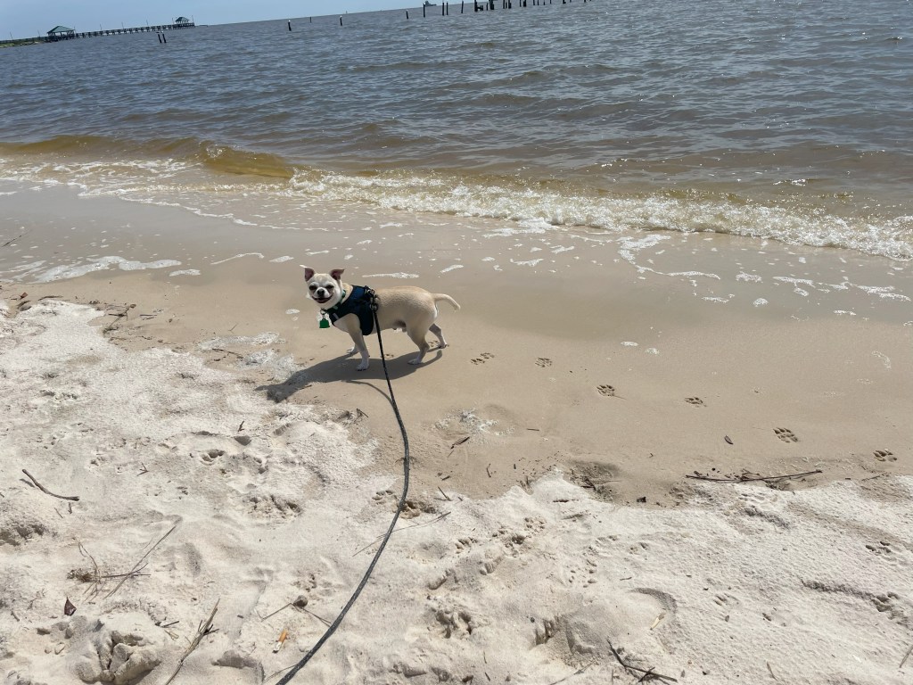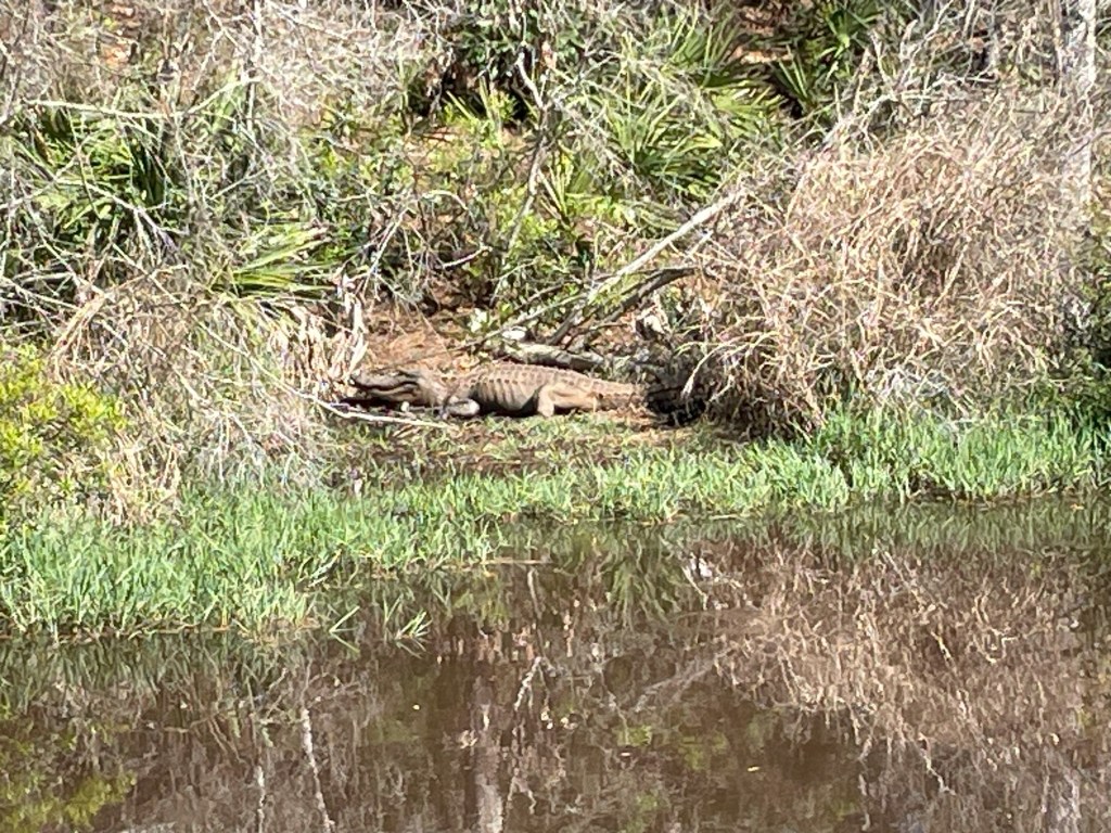 I mentioned an alligator we met at Kisatchie last week – this week, we had two neighbors at Gulf Islands, Little Al and Big Al. Both liked to hang out in their spots and enjoy the sun, although I think either would be glad to go for a swim with Nico if the opportunity presented itself.