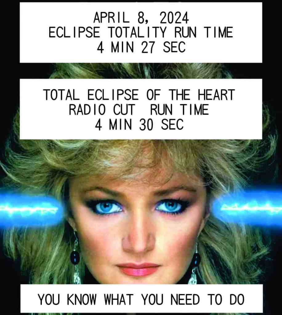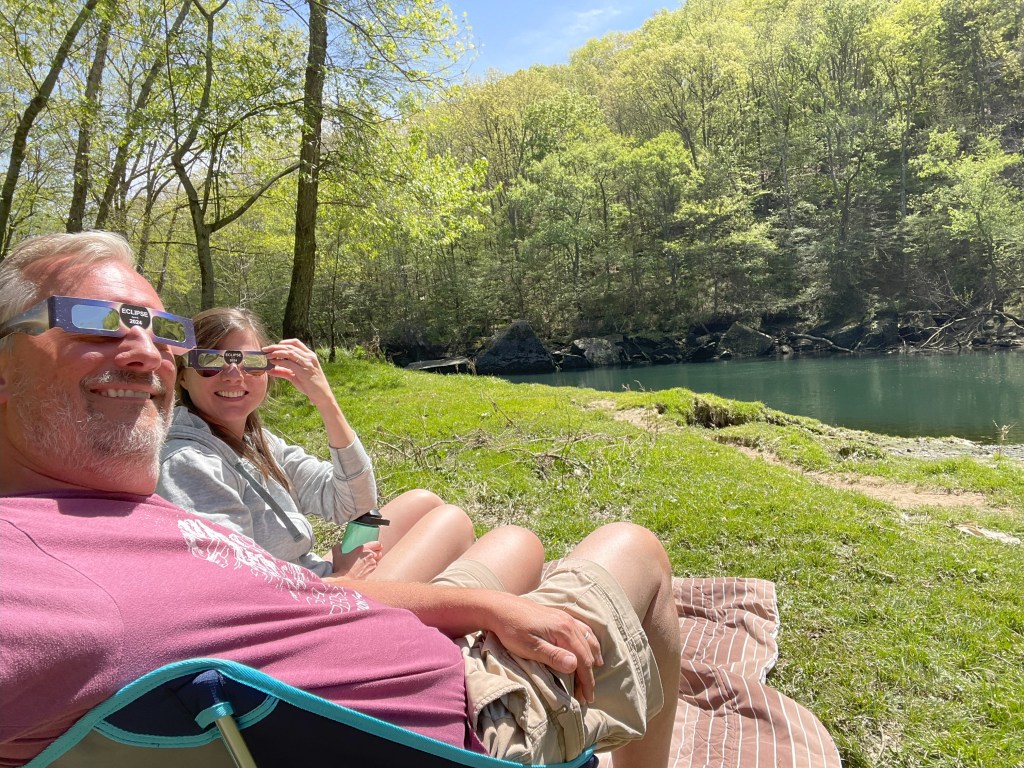 Okay, I may have went to the well once too often there, with two Bonnie Tyler-related memes, but they both cracked me up. We did not opt to listen to the song during the eclipse (although we listened to an eclipse-themed Spotify playlist on the drive up and back). Instead, we found a wonderful bend of a stream that we had to ourselves for the eclipse. The weather was amazing – and it was exactly the experience we had hoped for. My iPhone pics did the eclipse no justice, but it wasn’t about getting pictures – plenty of professionals will get great shots. It was about the experience, and it was wonderful.
