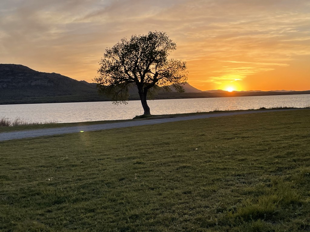 So… I mentioned the wildlife, but there are many other selling points to Wichita Mountain. It has a wonderful visitor’s center, and a ton of wildflowers (at least at the time I’m writing this, in mid April). There’s a very nice campground in the park, Doris Campground, and if that’s all full (as it was when we decided to extend our stay over the weekend), there’s a campground just outside the park at Lake Lawtonka that you can crash at too. I will say, I recommend Doris, but here’s a photo of our sunset at Lake Lawtonka – our second choice of the two: