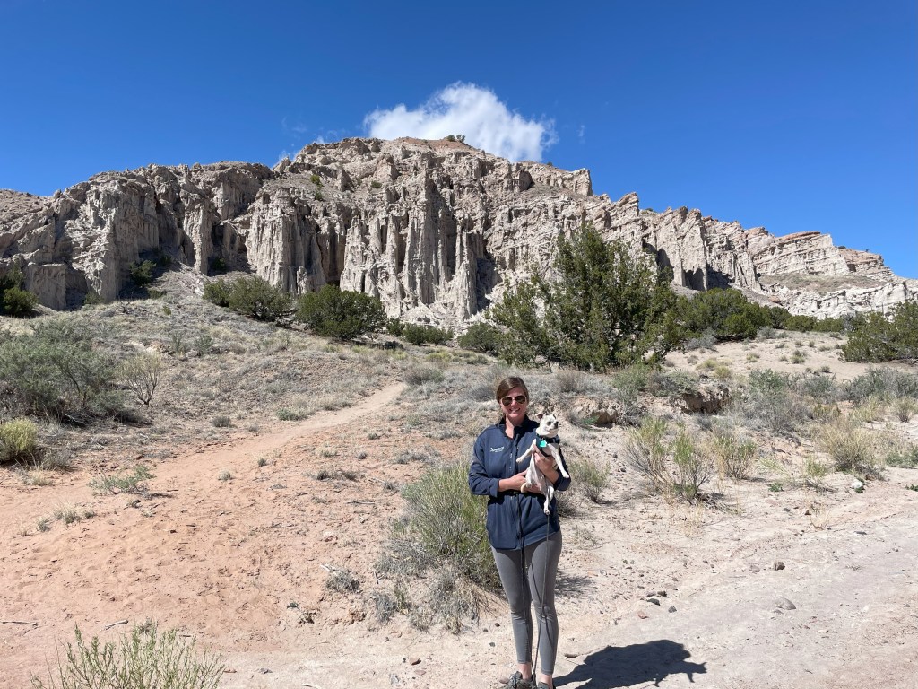 There are a series of trails at Ghost Ranch. We did two of them this time – Kitchen Mesa and Matrimonial Point Trail. Both were nice – particularly Kitchen Mesa, although we ended up stopping about fifteen or twenty feet short of the mesa because frankly, the trail was pretty sketchy to navigate with a chihuahua, no matter how much he was excited to try to boulder up the place.