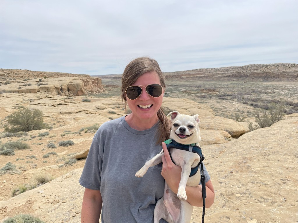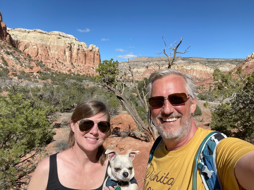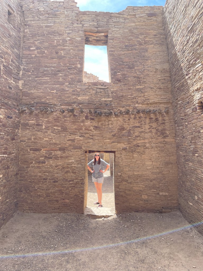 The next day, we drove over to the Chaco Culture National Historical Park, or “Chaco Canyon”. This place is also UNESCO World Heritage Site, and is truly unique. There are a series of ruins from buildings that were created by the Chacoans in the ninth through twelfth centuries, and are in pretty remarkable condition. It’s believed to have been a major trading hub with people coming from many, many hundreds of miles to trade goods. There’s also a lot to the construction that indicates the Chacoans were extraordinarily advanced when it came to their understandings of solar and lunar cycles. And we did a wonderful hiking trail there called the Pueblo Alto trail. The trail is about five and a half miles, and while the elevation gain is only a bit over 500 feet, it’s a very steep climb through a very tight crevasse. It’s a loop trail, and you actually go down a second crevasse on the way down that is even tighter. It was fun to navigate, but consider if that would be an issue for you before attempting it. The trail gives you a great view of the the ruins from above, and there are a few other ruins on top of the mesa, as well as plenty of pottery fragments and other cool stuff to see up there. We had a great view from up there as we enjoyed lunch together. One other caution I’ll throw out there when mentioning Chaco Canyon. There are two roads into the canyon – one is terrible and the other one is worse! We made it fine in our Silverado, but if you’re in a regular car, take it very easy and know it’s a bit of a slog to get there.