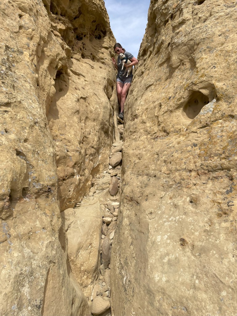 Anyway, as far as the hike itself – it’s very easy to navigate, with hardly any climb or rough terrain. And the scenery is amazing! It has hoodoos and slot canyons and fins – the kinds of things you may find in some of the Utah parks, but as the name Plaza Blanca may imply, unlike the orange/red tones of the Utah parks, this area is almost alabaster white. Georgia O’Keeffe was so taken by it that she did a series of paintings here, her “white palace”. We loved this hike! Here’s a few pics: