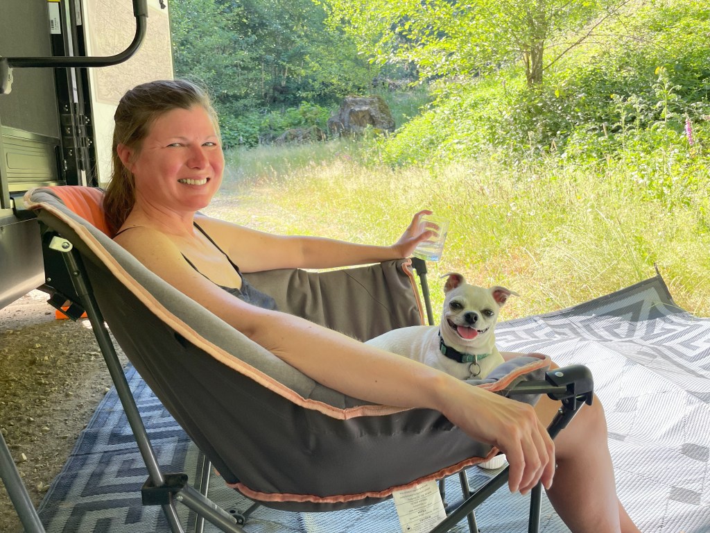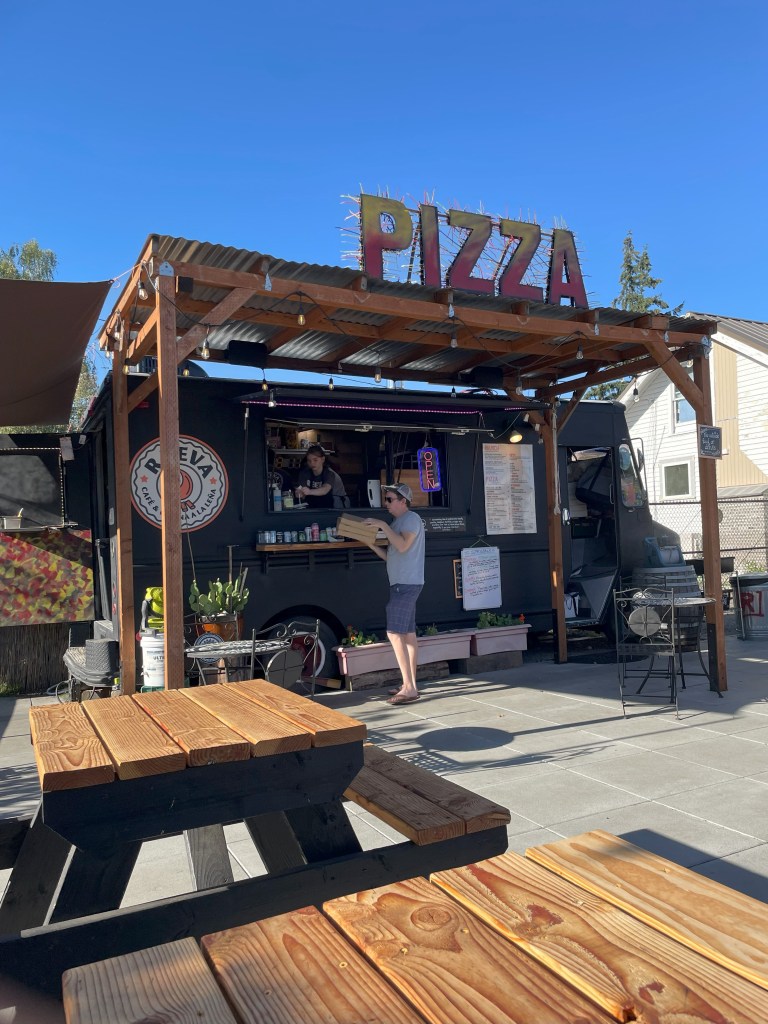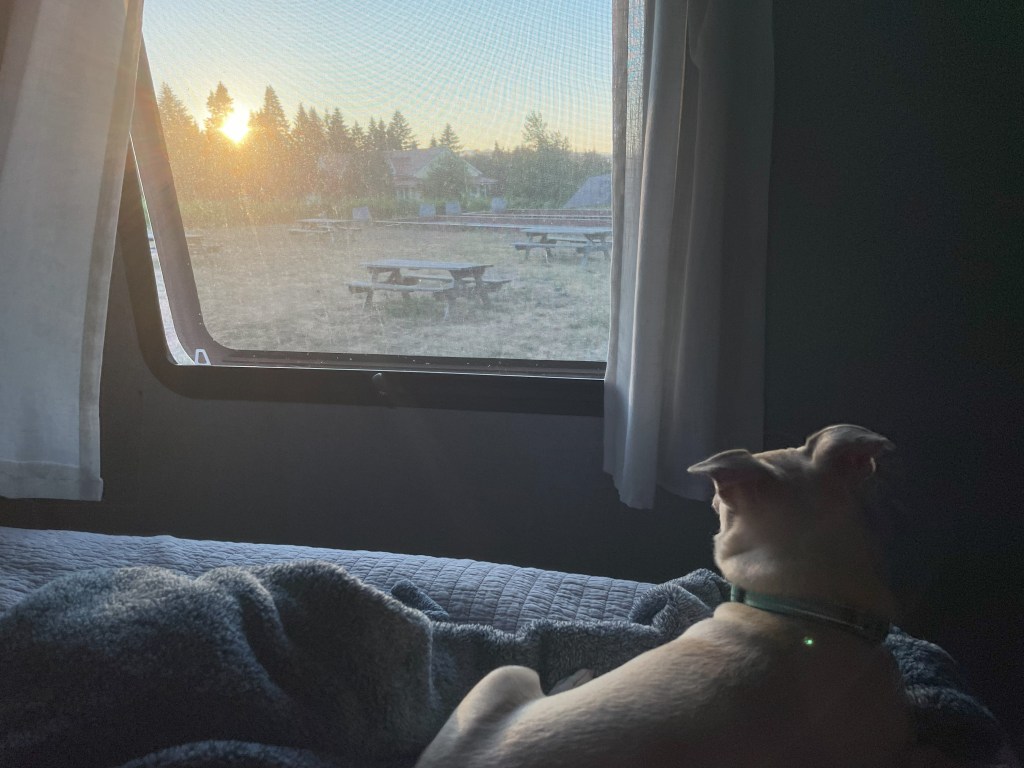 After we left Tillamook, we did a one night stay at a winery called Utopia in the Willamette Valley. There’s an app called “Harvest Hosts” that can set you up with a place to stay for the night for free, with the expectation that you’ll buy some stuff from the folks putting you up. There are a lot of breweries, wineries, museums, farms, and others that participate, and that’s how we found Utopia. The wines were great, the owner and staff were wonderful, and we got to set up our trailer right by the vines.