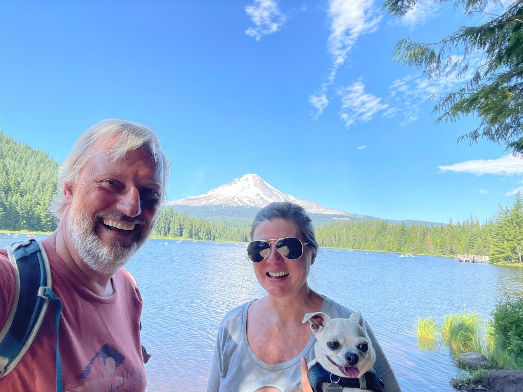 I’m sure I’ll have a lot more to post about Mount Hood in our next entry, after we’ve had more time here, but this is a place with a special tie for Kristen. Her folks both lived in Oregon growing up and her mom was raised in a different part of the Mount Hood area. Her mom even helped build out the trail around Lost Lake – it’s a hike that Kristen and I really enjoyed five years ago when we came to Oregon and we hope to get in again on this trip so Nico can get a chance to enjoy it as well.