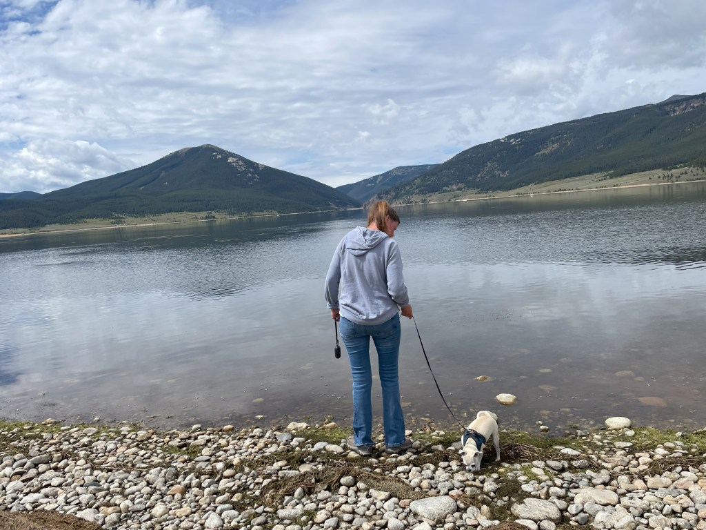 Somewhat surprisingly, there isn’t much hiking in this area. We did take the dogs for a short walk with Janet along the bank of the Taylor Reservoir.