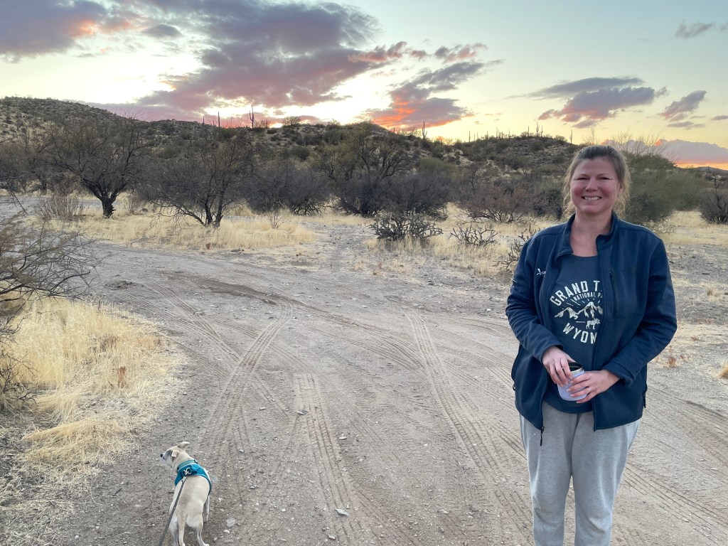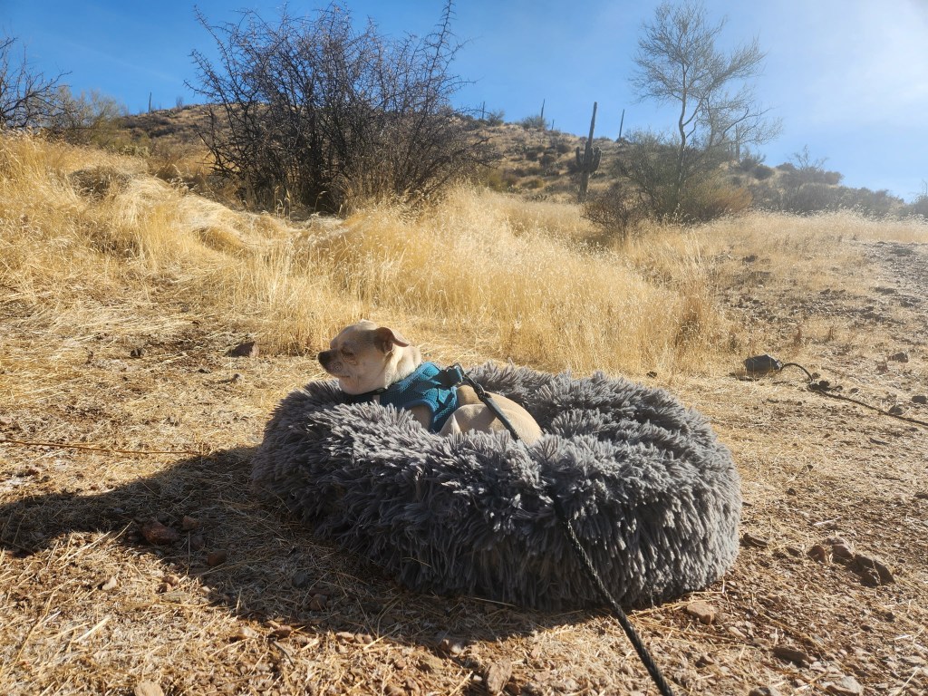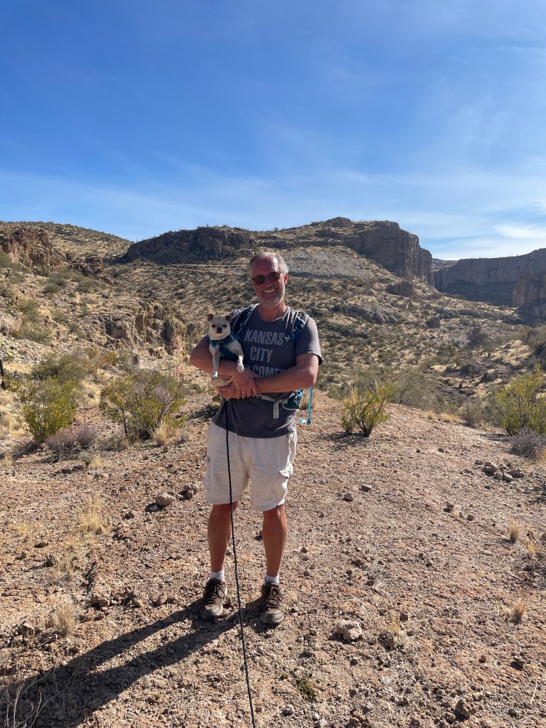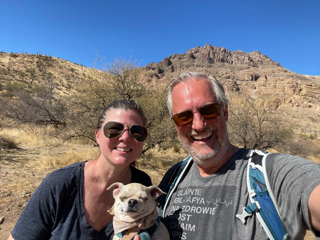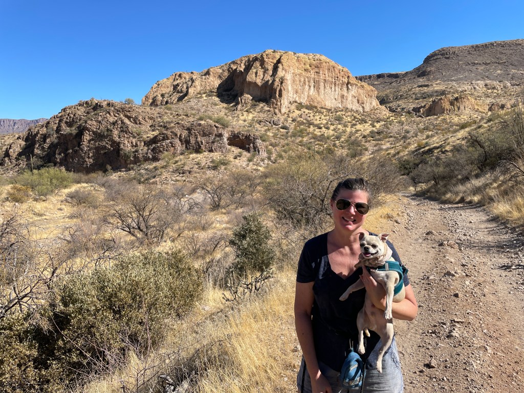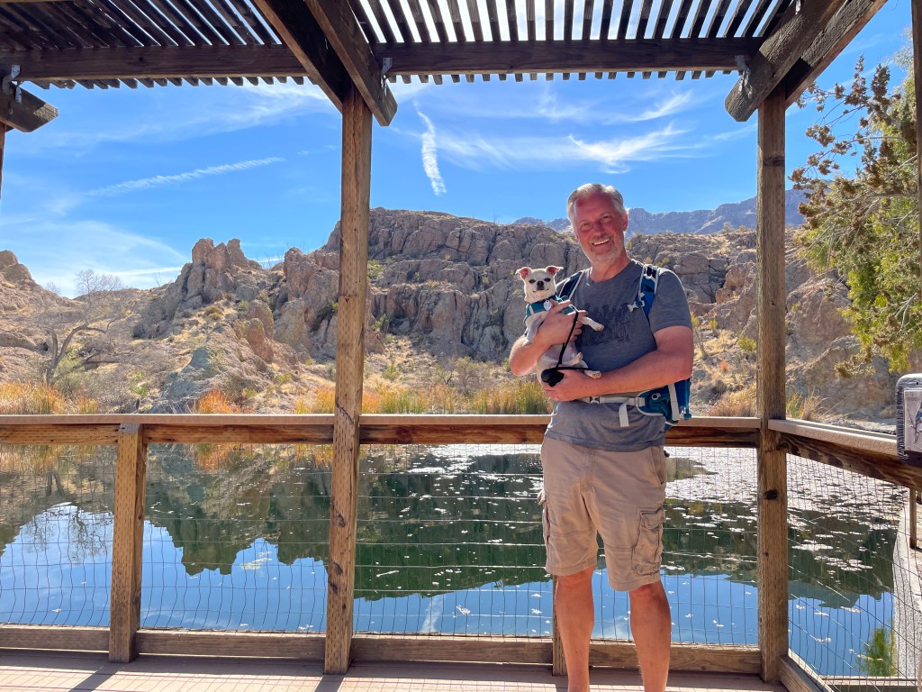 We’re in a part of Arizona that has a lot more mountains and valleys, and the hiking is gorgeous. We had a little bit of rain on our first day and a half in the area, but since then, it’s been nothing but sun (much to our new solar panels’ delight) and temps climbing into the mid-to-upper 70’s.