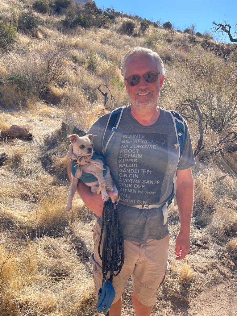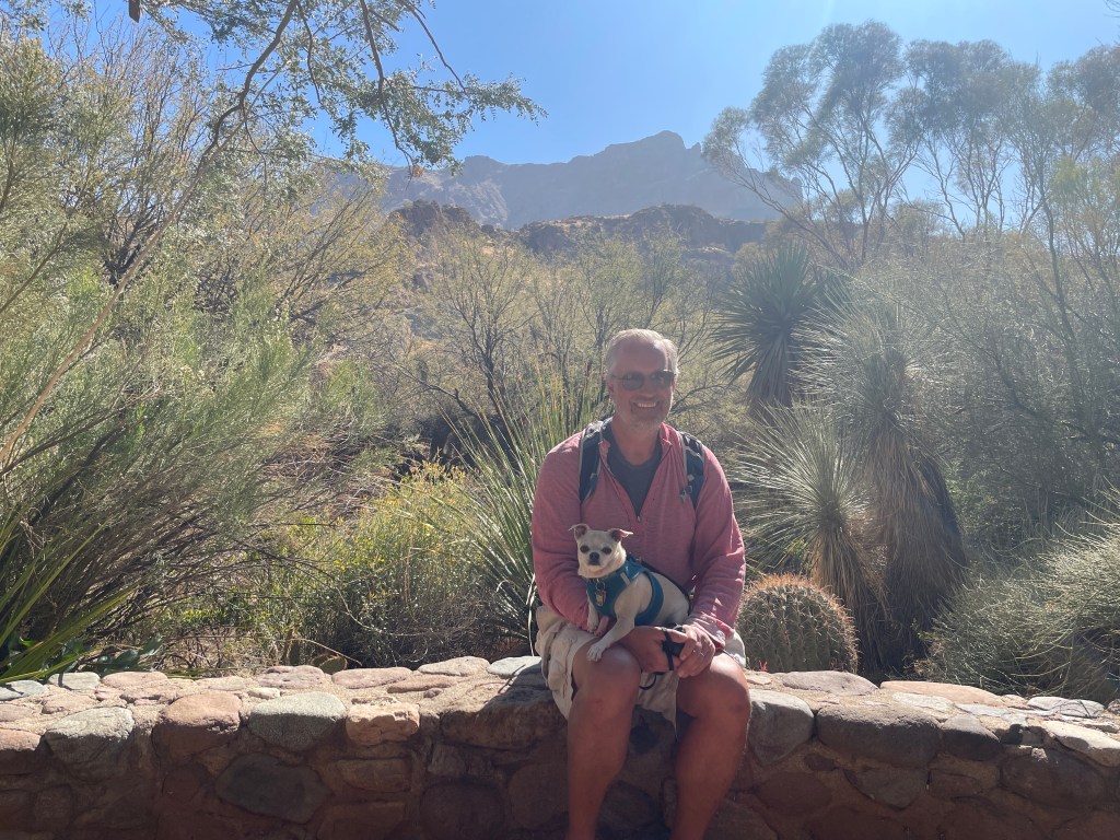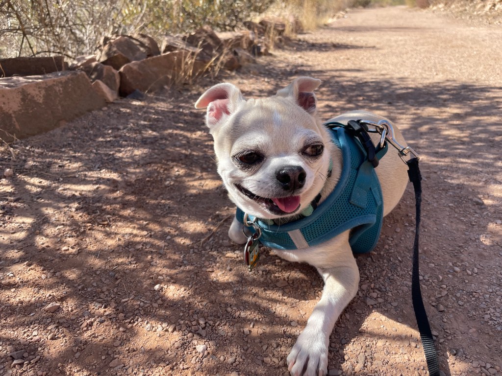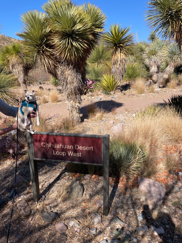 The arboretum had some areas dedicated to plants of the Chihuahuan Desert. Nico was less amused than we were when we decided it was important to document the Chihuahua’s visit to the Chihuahuan exhibits: