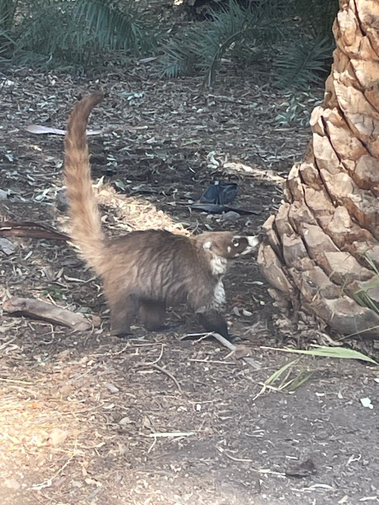We’ve visited the arboretum twice so far. In our first visit, we were lucky enough to encounter a family of coatimundis wandering through the area. Coatimundis are cousins of raccoons, and they’re good tree climbers. We’d never encountered them outside of a zoo before: