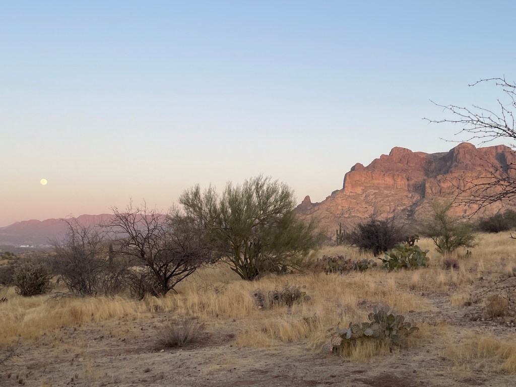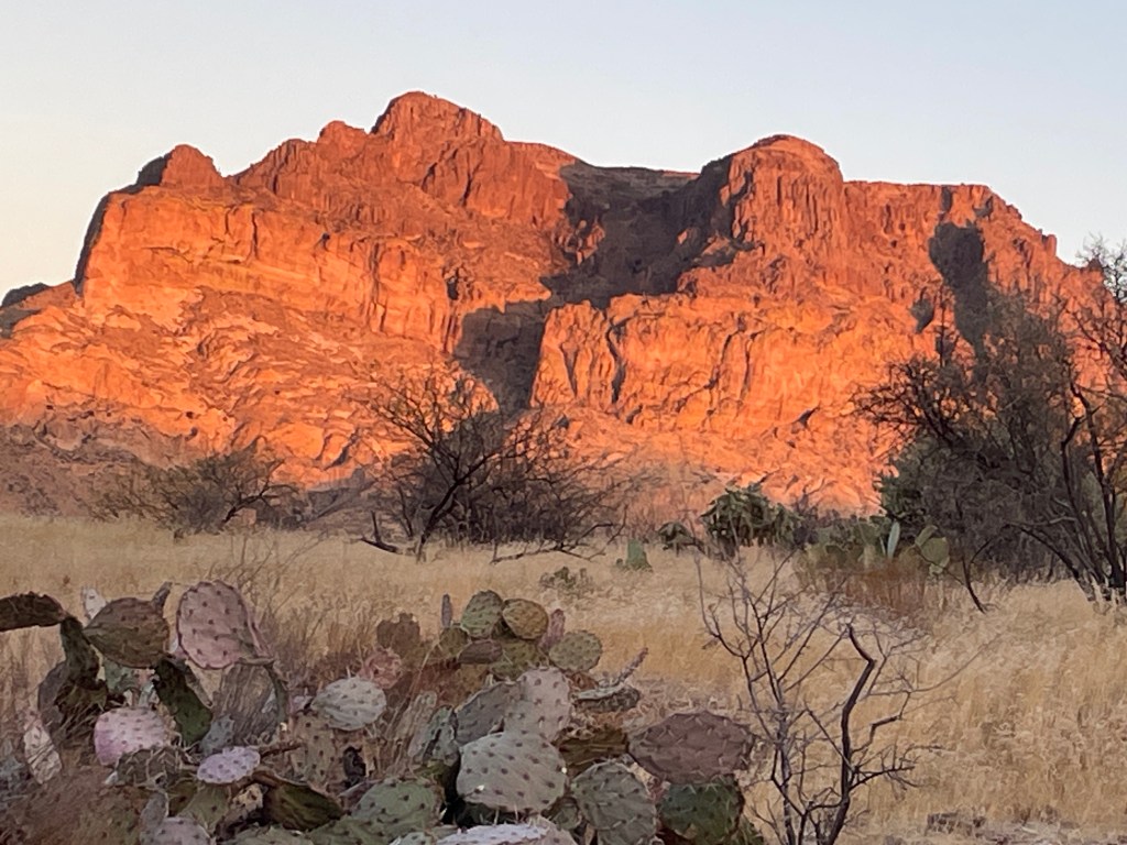 Last week, I mentioned we are camping right next to Picketpost Mountain. Picketpost offers us spectacular views every night around sunset as it gets a golden hue.