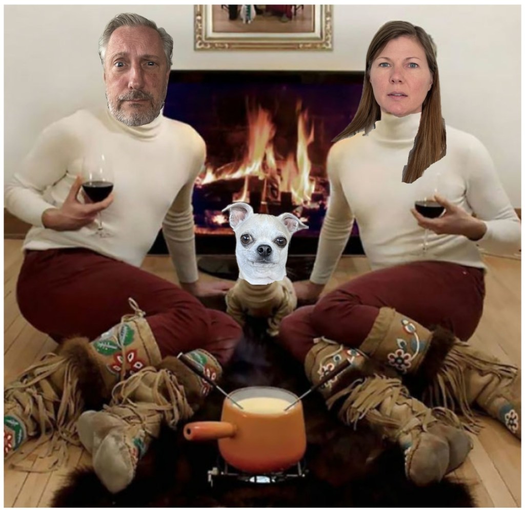 Man, we look good in turtlenecks and mukluks by the fondue pot.