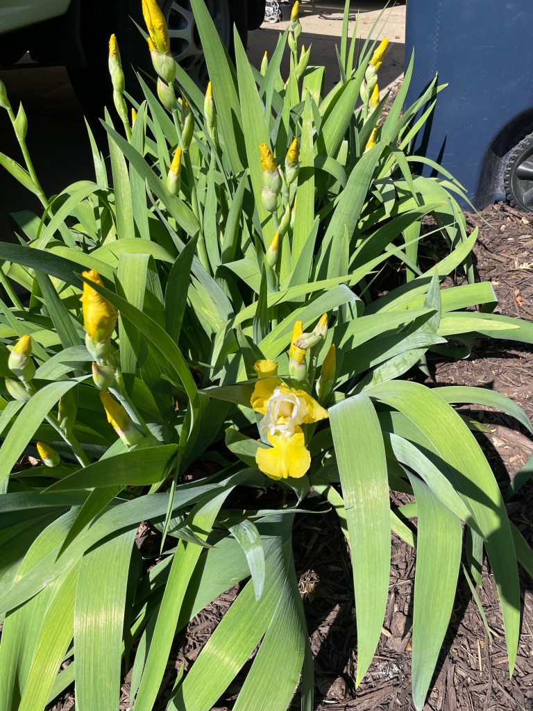 Oh – speaking of flowers… at our home, we have some irises that grow every year right between the front corner of our house and our driveway. Pretty much every year, I clumsily tromp over them and destroy the plants before we ever get flowers, to Kristen’s chagrin. Well I was careful this year to protect them, but we didn’t know if they would bloom before we left town. They hadn’t fully bloomed as of the night before we left. Then at the last minute, as we packed up the last items and prepared to leave town, this happened: