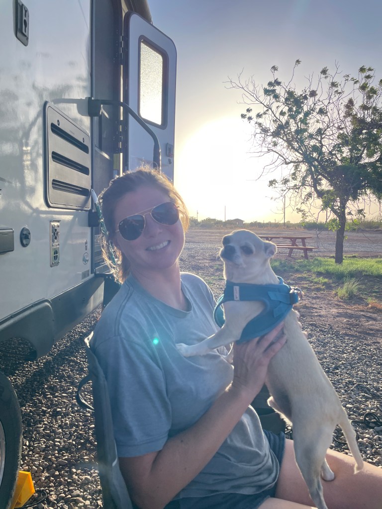 The trip hasn’t been without a few challenges. That’s kind of a constant when you live on the road like this. The first challenge was when we arrived at Caprock. There are several steps you take when you get to your campsite – you have to secure the trailer wheels, unhitch from the truck, level the trailer out, add stabilizers to the corners, extend the slide outs, get the satellite internet set up, get the “front porch” set up with an outdoor carpet, folding chairs and a bed for Nico, and sweep the inside after all the stuff got shaken around during the drive. There’s a similar list of things to do before you’re breaking down a camp too.