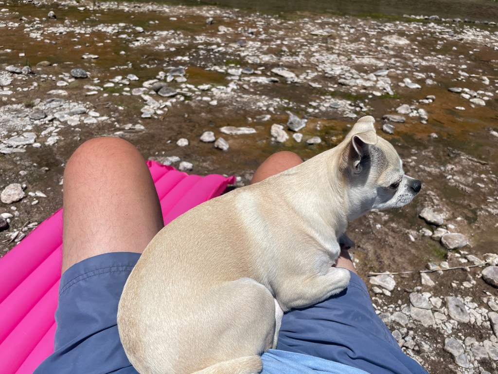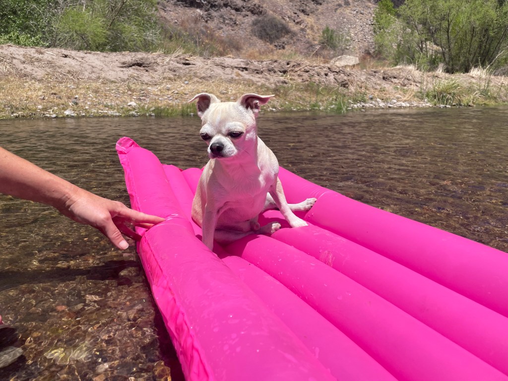 We enjoyed the springs enough that we went back to enjoy a river day there, relaxing in the water with some chairs and Nico’s Barbie pillow.
