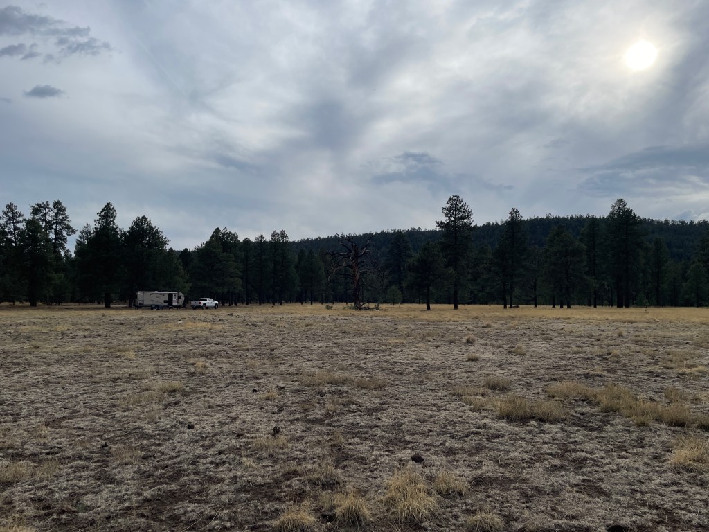 That’s right – we are currently camping about 9200 feet above sea level in this beautiful green mountain right next to a lovely yellow field, in a wonderful national forest area in eastern Arizona. It’s a nice little spot that we have pretty much to ourselves.