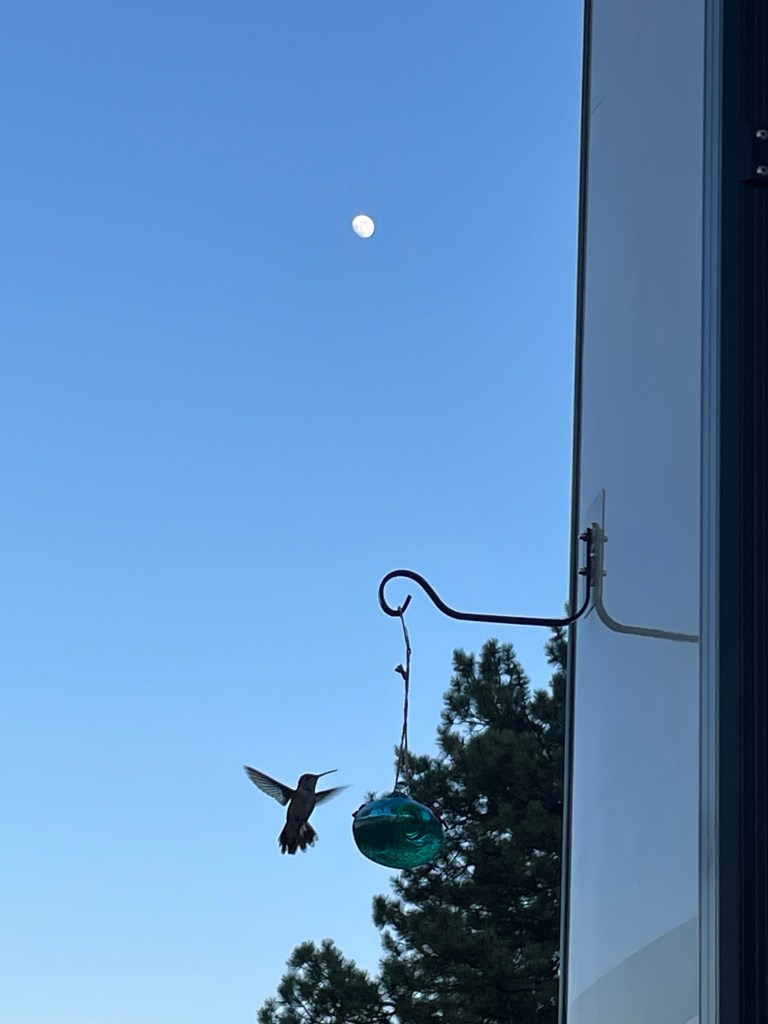 We really enjoyed getting to know the hummingbirds – we’re clearly making the transition to old people very smoothly if we’re already at the point where we’re naming birds. At one point, we listened to a “Stuff You Should Know” podcast on hummingbirds to understand our new friends a little better. One factoid that caught our attention was that the mating ritual for hummingbirds lasts about four seconds. But hey, to paraphrase “Flight of the Conchords”, four seconds in heaven is better than three seconds in heaven.