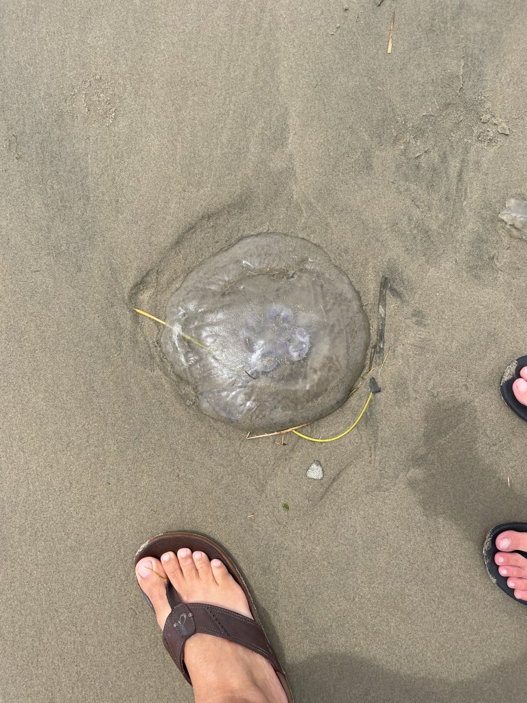 (Yeah… I did not pick up this jellyfish to save him. But I’m guessing that the tide came in right after taking this pic and he’s having a fun happy hour with his jellyfish friends right now as you’re reading this)