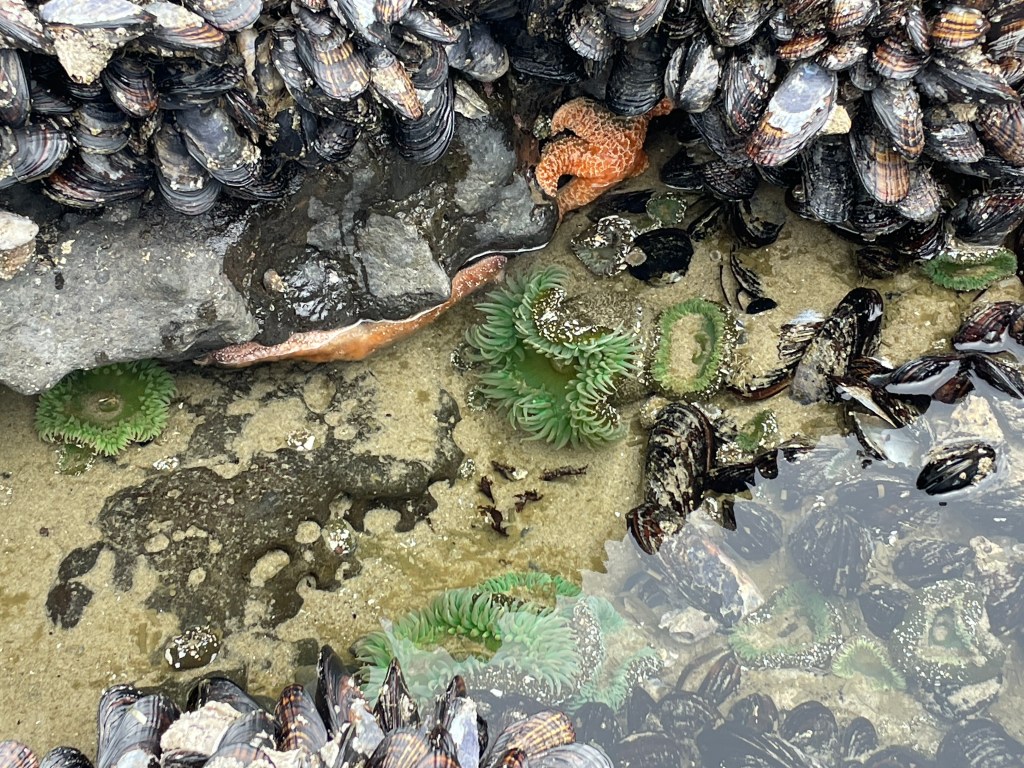 While in Suislaw, we didn’t do as many forest hikes this year as we had last year, and there are a number of wonderful hikes through beautiful old growth forest in this area. Instead, this year we focused more on enjoying the beach. We often took three or four trips down to the beach to walk along the shore each day, and enjoyed setting up on the the beachfront for picnics or to catch the amazing sunsets. Along the way, we saw a grey whale mama and her calf, saved a ten pound tarpon that had been pulled in by the tide, encountered bunches of jellyfish, explored tide pools full of star fish and sea anemones, dug these cool isopods out of the wet sand – we had a blast!