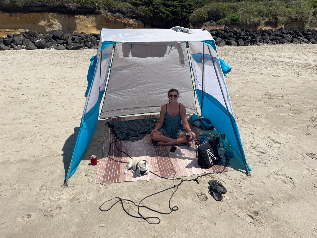 Kristen ordered this lean to for us to utilize on the beach, and it worked out great for us – especially on the days that got a bit windy.