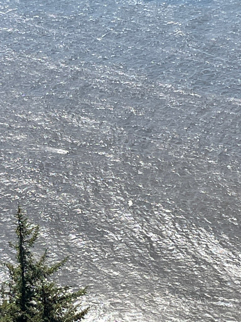 (Sadly, I didn’t get a good pic of the whales, but you can see the mama breaching here just a bit up and left of the treetop)