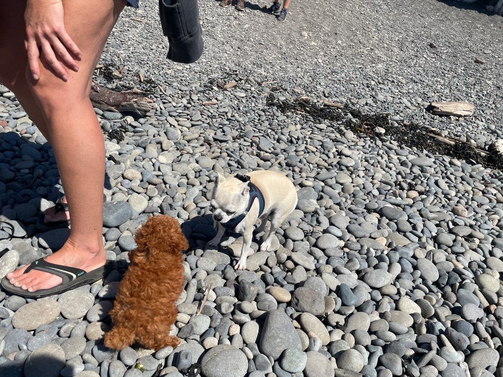 Nico made some more new buddies, both of the two legged and four legged varieties, since our last post. One was a really cute little nine week old pup named Sonny, who Nico met at Rialto Beach: