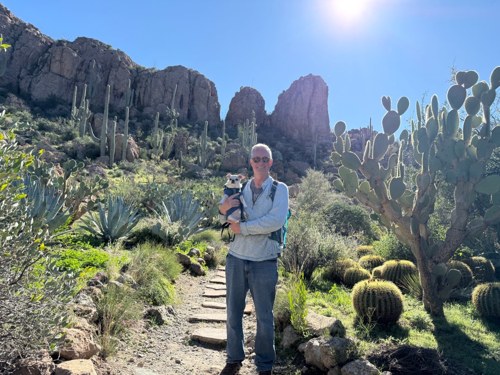 Boyce Thompson Arboretum is a place that we enjoyed so much last year that we bought an annual pass to it, which we’ve used again a couple of times this January. It’s pretty spectacular, even if Nico finds it somewhat cheesy when we hold him by the “Chihuahuan Desert” signs: