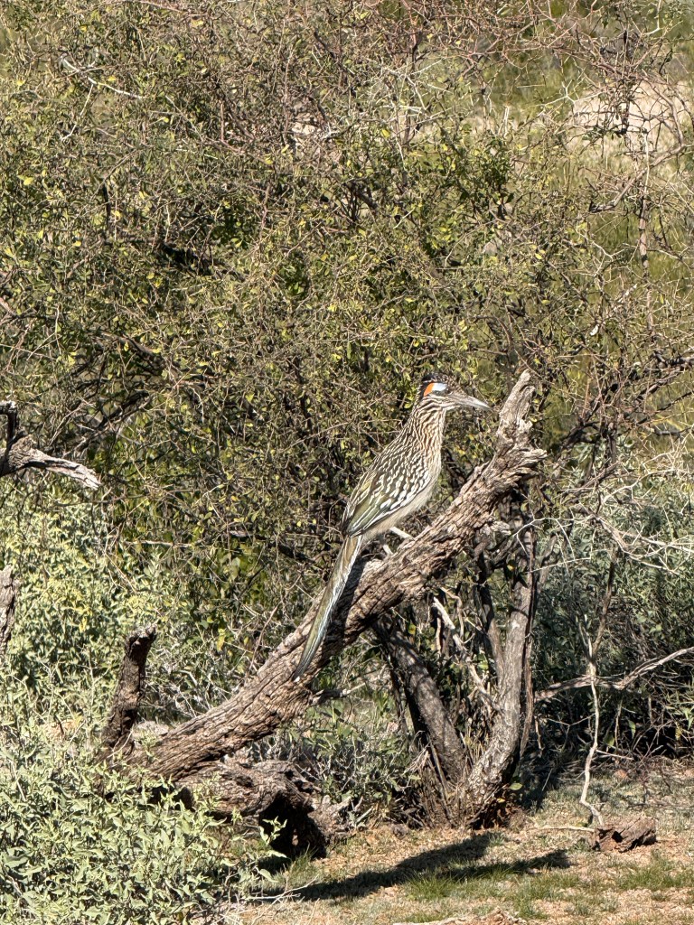 While in Lost Dutchman, we came across this roadrunner, standing just a few feet from the trail and making a strange mating call that sounds nothing like “Meep Meep”: